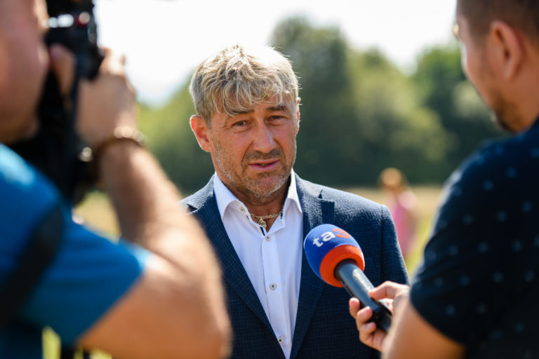 Zástupca spoločnosti BYTY Košúty Marián Styk počas brífingu pri príležitosti slávnostného otvorenia výstavby nových nájomných bytov v mestskej časti Martin-Košúty. Foto: SITA/Milo Fabia