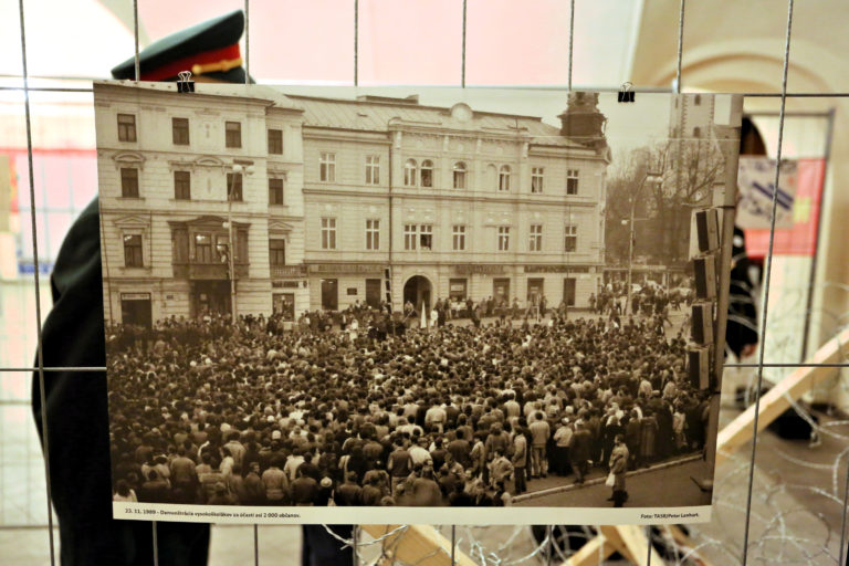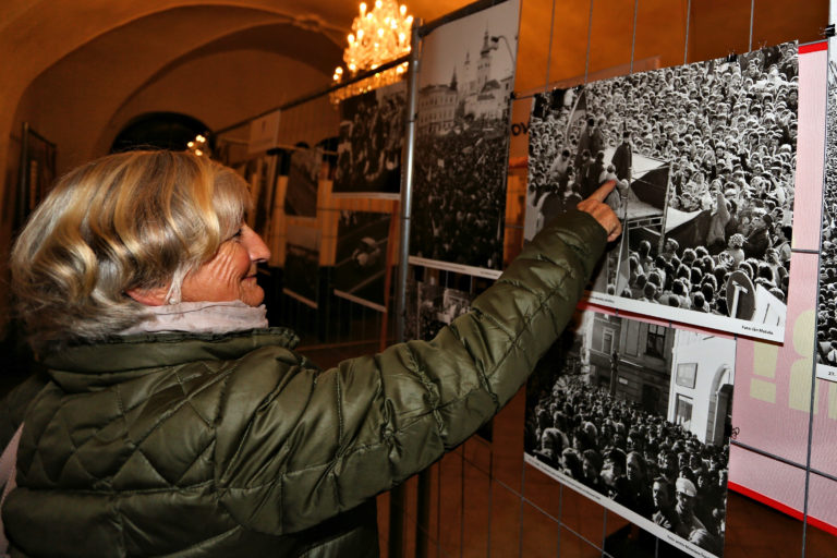 Archívna fotografia počas otvorenia interaktívnej výstavy dobových dokumentov a predmetov z obdobia Nežnej revolúcie s názvom Kľúčové okamihy v Banskej Bystrici. Banská Bystrica, 15. november 2019. Foto: SITA/Peter Rusko