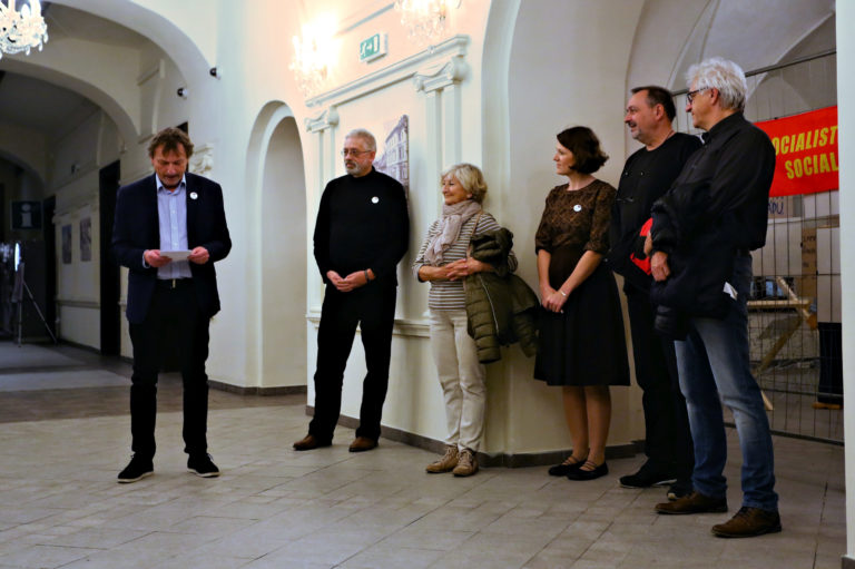 Atmosféra počas otvorenia interaktívnej výstavy dobových dokumentov a predmetov z obdobia Nežnej revolúcie s názvom Kľúčové okamihy v Banskej Bystrici. Banská Bystrica, 15. november 2019. Foto: SITA/Peter Rusko