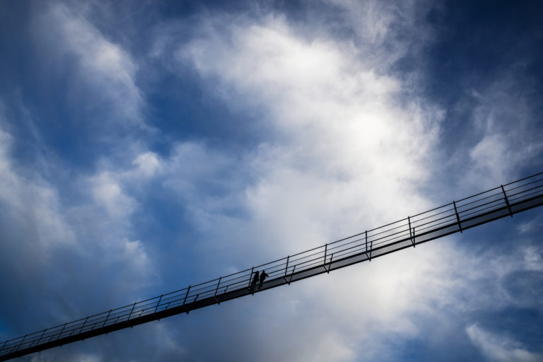 Pri švajčiarskom meste Zermatt otvorili v sobotu údajne najdlhší visutý most pre peších na svete. Most dlhý 494 metrov s názvom Europabrücke (Európsky most) visí 85 metrov nad roklinou Grabengufer. Foto: Valentin Flauraud/Keystone via AP.