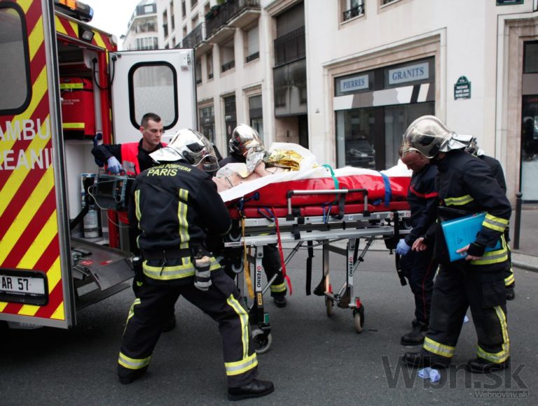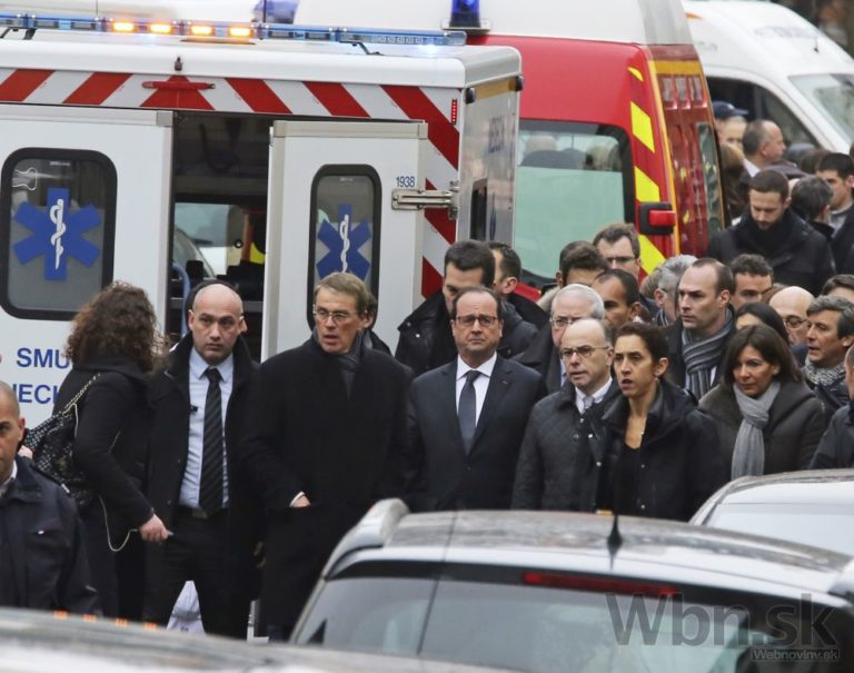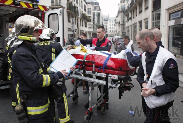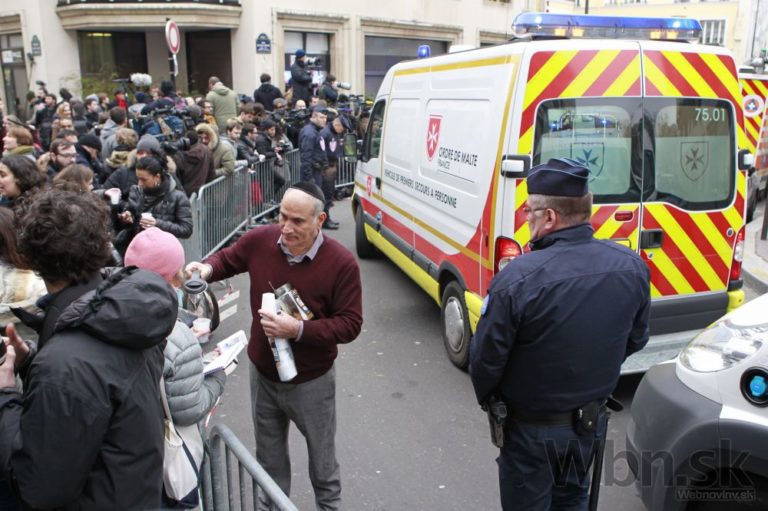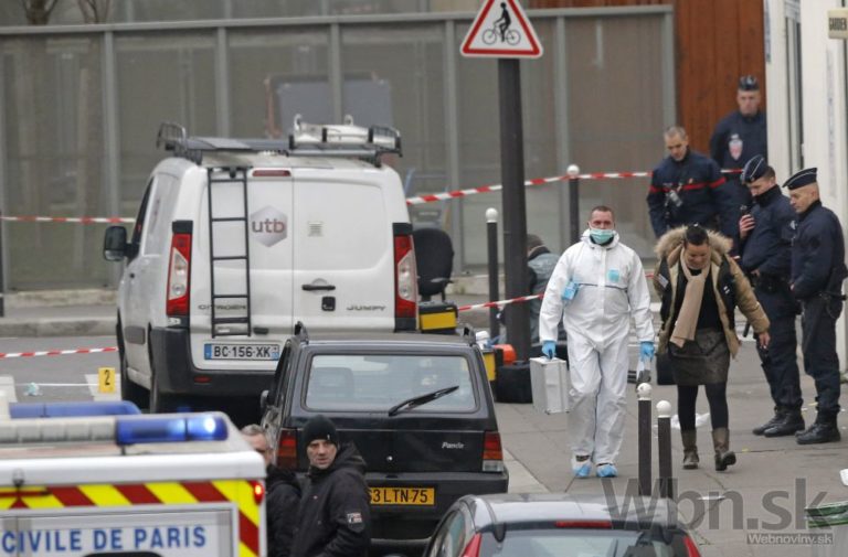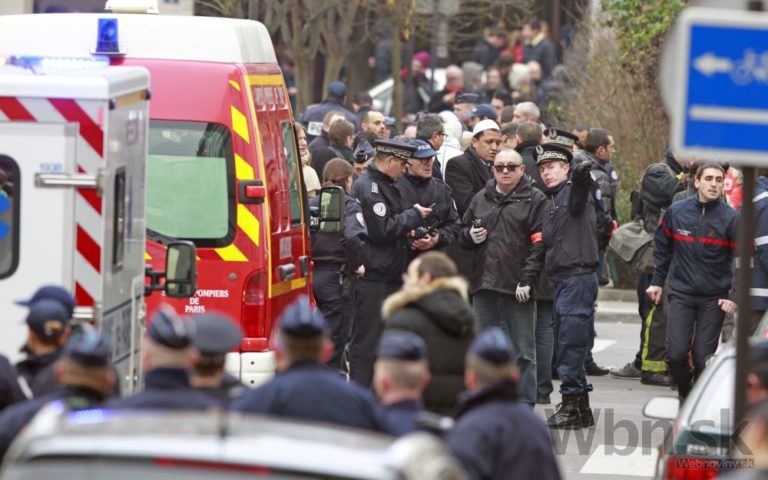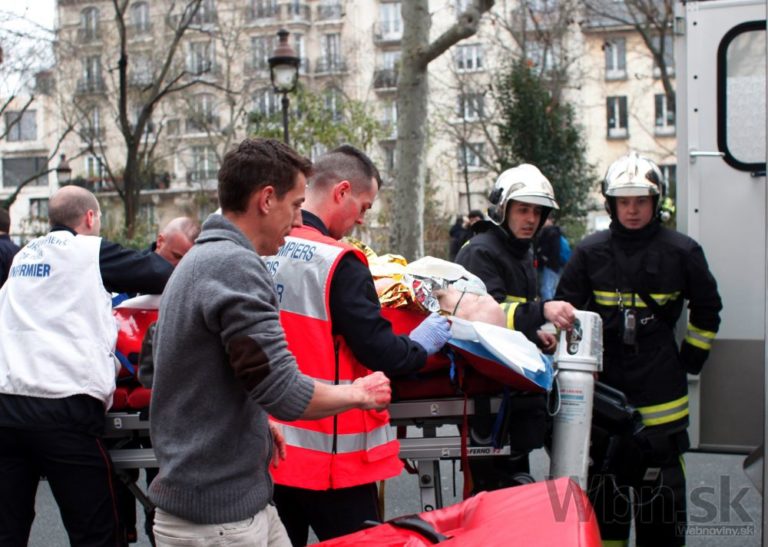 Ozbrojení muži vtrhli do redakcie satirického časopisu Charlie Hebdo v Paríži a začali strieľať. Zabili najmenej 12 ľudí a dvadsať ďalších zranili, viacerých kriticky. Podľa svedkov vošli traja maskovaní muži ozbrojení automatickými zbraňami typu Kalašnikov do redakcie. Kričali, že pomstili proroka Mohameda i tradičné Alah je veľký. Paríž, 7. január 2015. Foto: SITA/AP