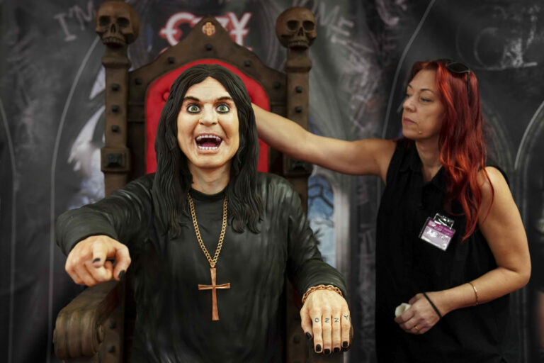 Posledné úpravy modelu rockovej hviezdy Ozzyho Osbournea v životnej veľkosti od Jane Lashbrook, ktorý bol vystavený na výstave Cake International v NEC v Birminghame v Anglicku, v piatok 3. novembra 2023. Foto: Jacob King/PA via AP