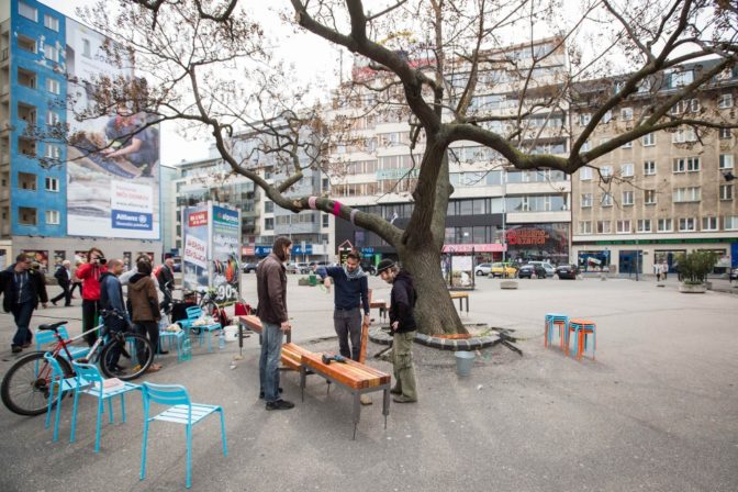 Lavička na Kamennom námestí v Bratislave