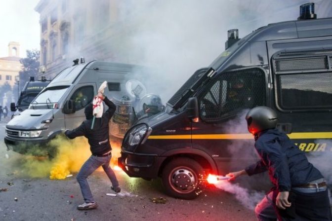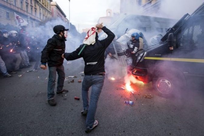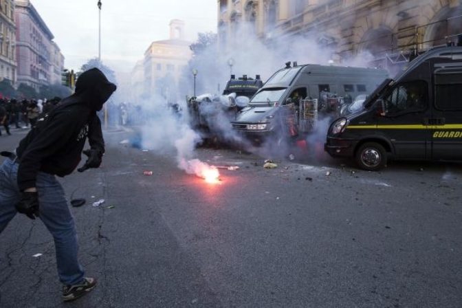 Násilné demonštrácie v uliciach Ríma