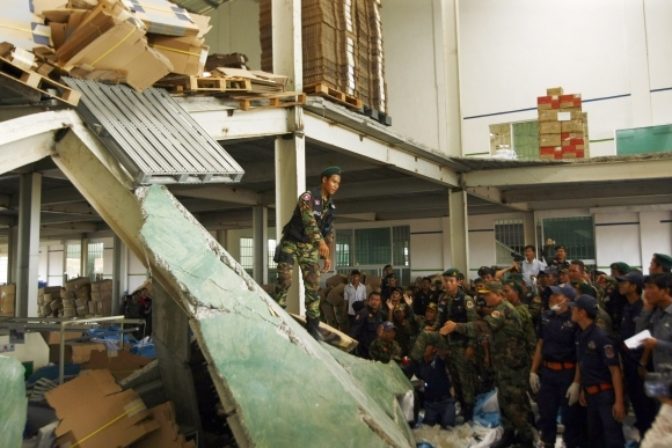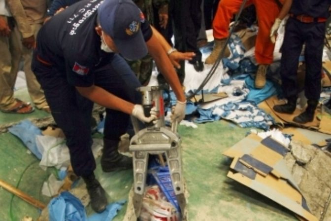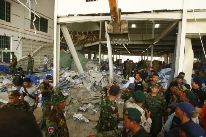 V Kambodži sa zrútila strecha továrne na výrobu obuvi