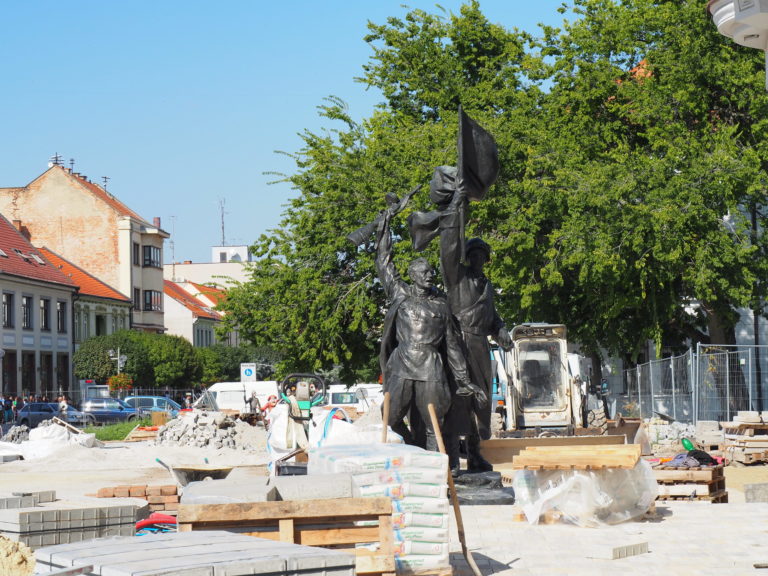 Pamätník Víťazstvo vrátili po niekoľkých mesiacoch na svoje pôvodné miesto na Námestí SNP v Trnave. Foto SITA: Pavol Machovič