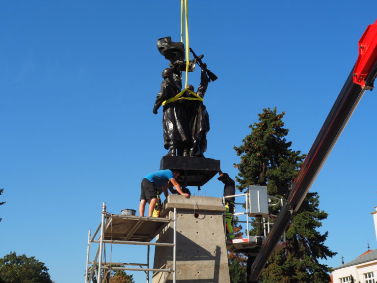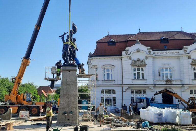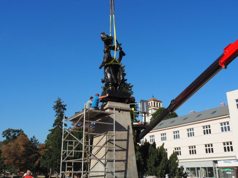 Pamätník Víťazstvo vrátili po niekoľkých mesiacoch na svoje pôvodné miesto na Námestí SNP v Trnave. Foto: SITA/Pavol Machovič