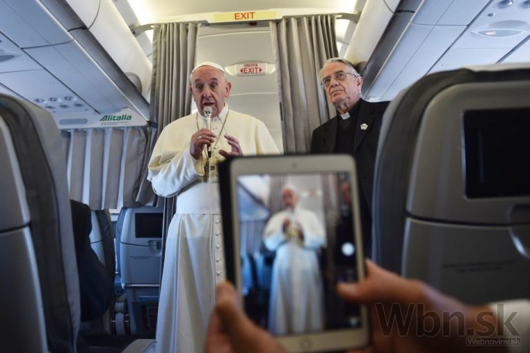 Pápež František I. na palube lietadla, ktorým priletel do bosnianskej metropoly Sarajevo. Foto: SITA/AP