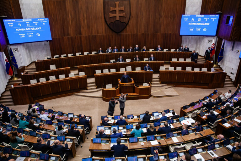Plénum NR SR po prvom hlasovaní o zákone z konsolidačného balíka v rámci rokovania 19. schôdze Národnej rady SR. Bratislava, 3. október 2024. Foto: SITA/Bokor Tomáš.