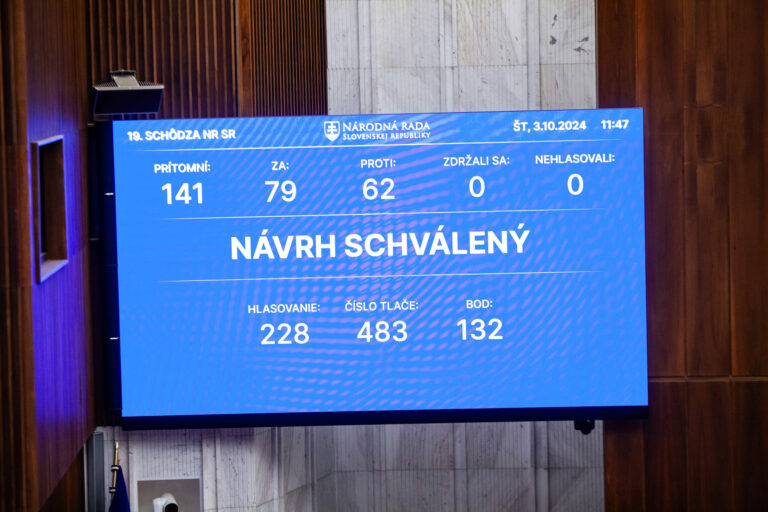 Výsledok z prvého hlasovania o balíku opatrení na konsolidáciu verejných financií v budúcom roku v rámci rokovania 19. schôdze Národnej rady SR. Bratislava, 3. október 2024. Foto: SITA/Bokor Tomáš.