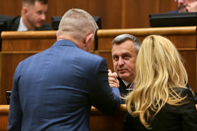 Zľava: Premiér SR Robert Fico, podpredseda NR SR Andrej Danko a ministerka kultúry SR Martina Šimkovičová počas hlasovania o schválení zákona o štátnom rozpočte v rámci rokovania pokračujúcej 23. schôdze Národnej rady (NR) SR. Bratislava. 3. december 2024. Foto: SITA/Tomáš Susko