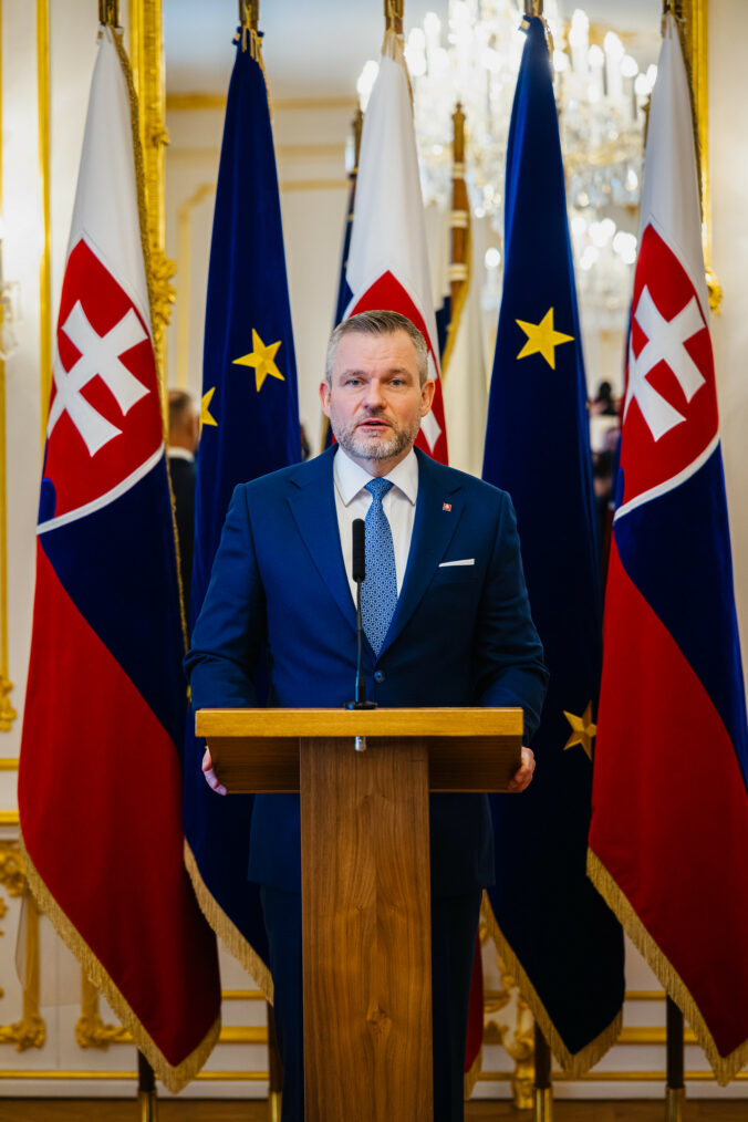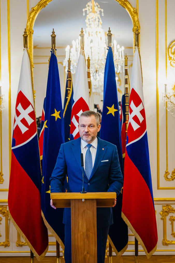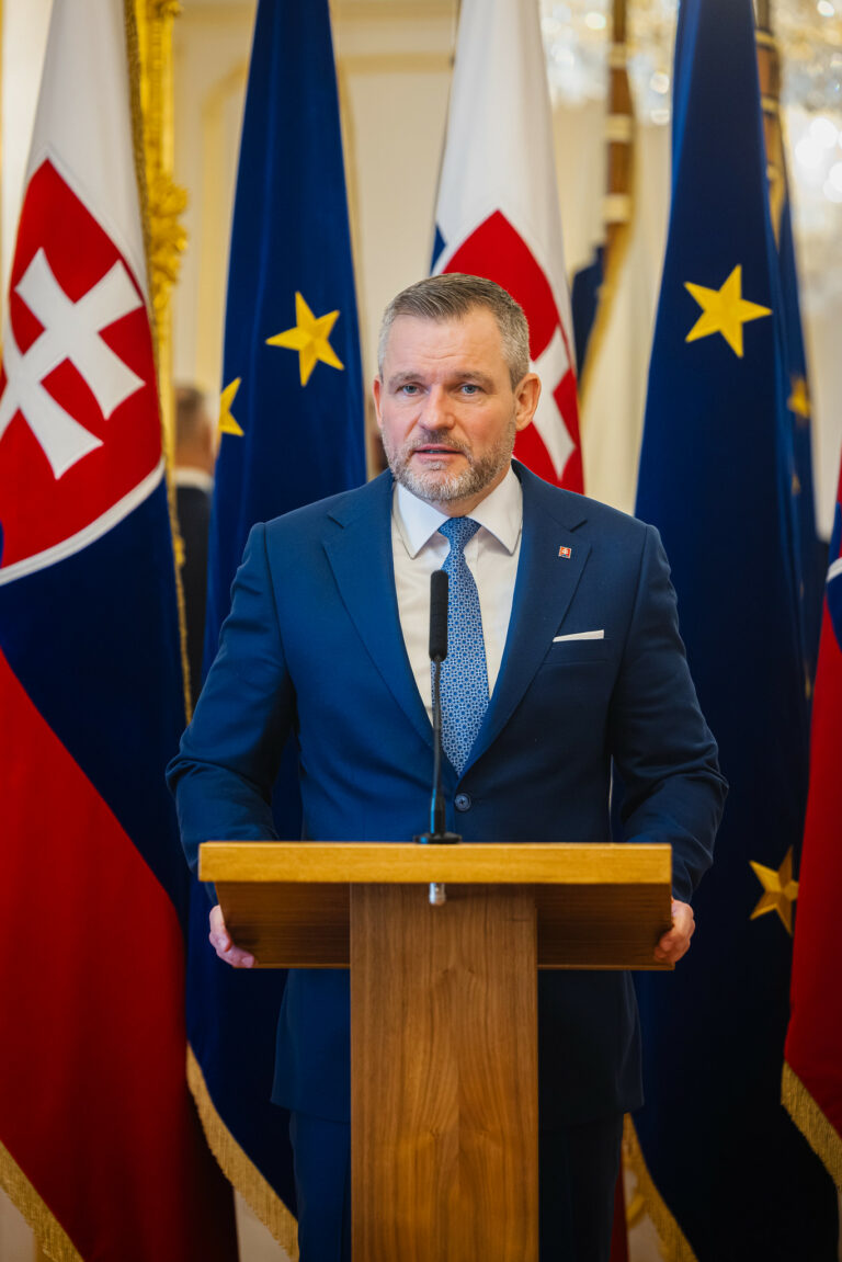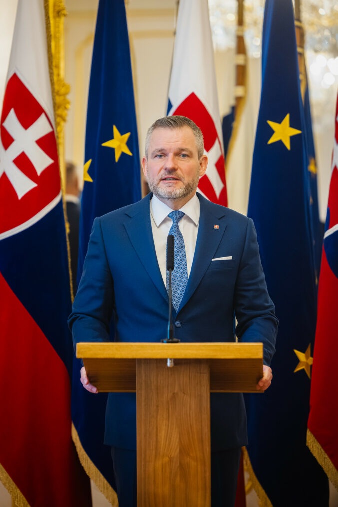 Prezident SR Peter Pellegrini počas tlačovej konferencie v rámci stretnutia troch najvyšších ústavných činiteľov na Bratislavskom hrade. Bratislava, 10. január 2026. Foto: SITA/Kancelária prezidenta SR