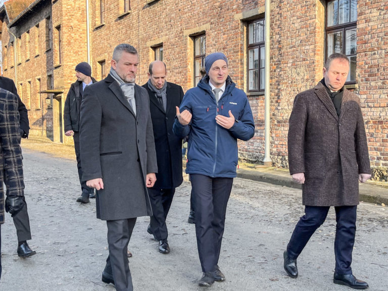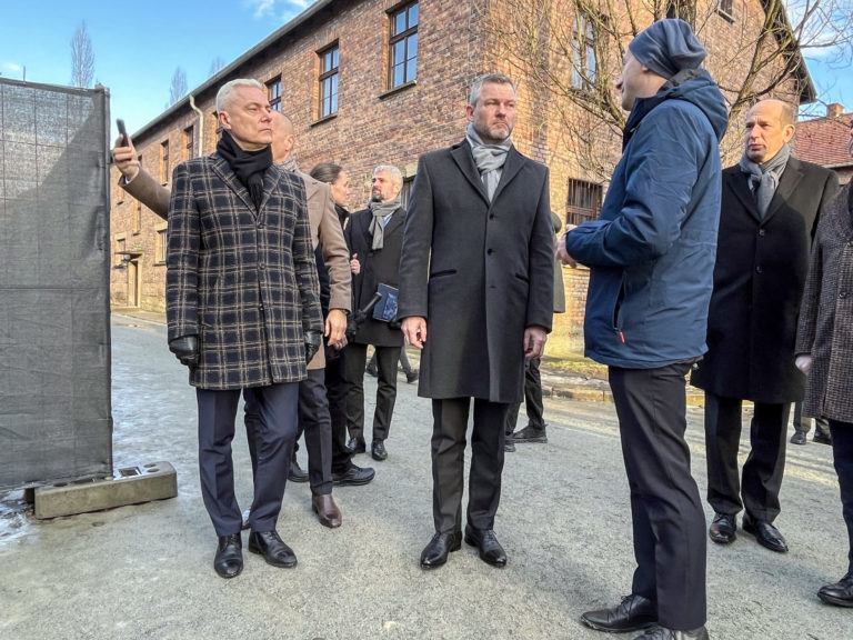 Predseda Národnej rady SR Peter Pellegrini (druhý sprava) počas návštevy koncentračného tábora Auschwitz-Birkenau v Poľsku. Krakov, 23. január 2024. Foto: SITA/Kristína Valovičová