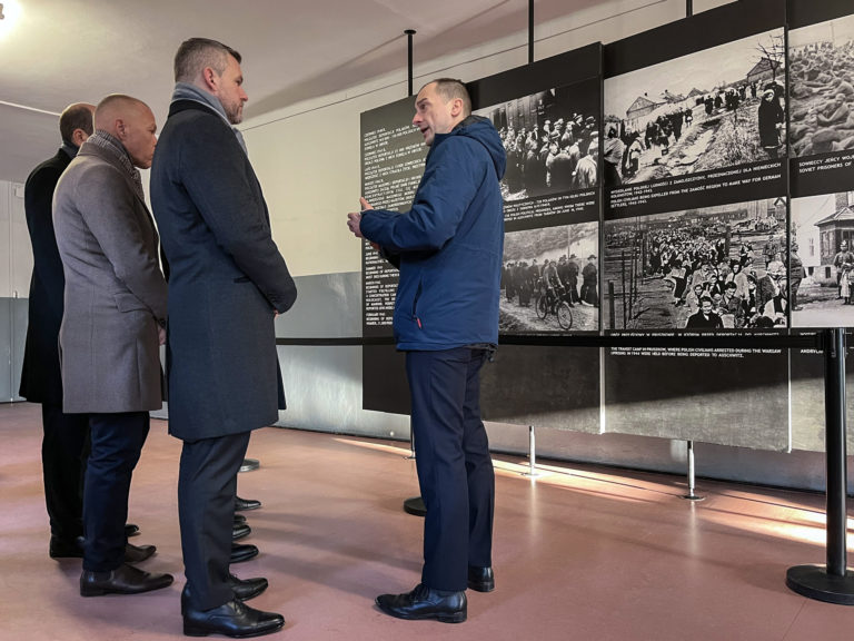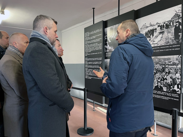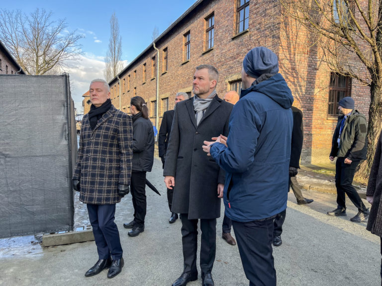 Predseda Národnej rady SR Peter Pellegrini (uprostred) počas navštevy koncentračného tábora Auschwitz-Birkenau v Poľsku. Krakov, 23. január 2024. Foto: SITA/Kristína Valovičová