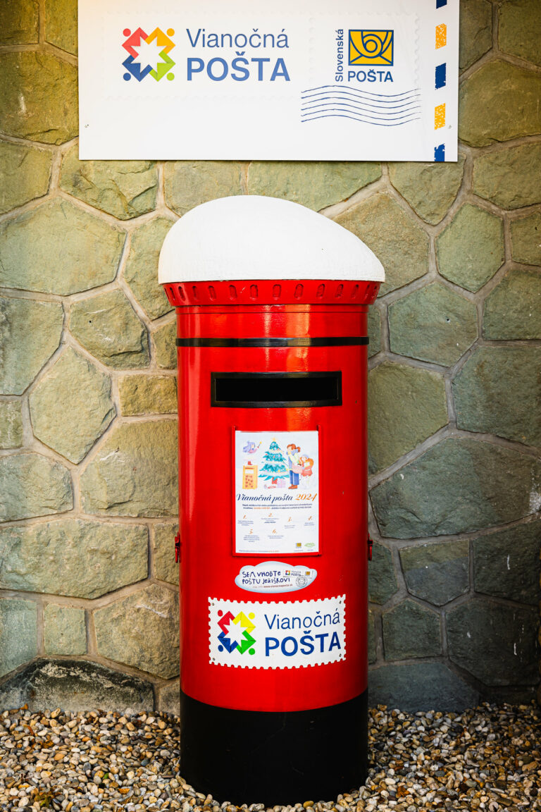 Špeciálna vianočná poštová schránka slúžiaca na vhadzovanie listu, alebo pohľadnice so želaním Ježiškovi v Rajeckej Lesnej pri príležitosti slávnostného otvorenia Vianočnej pošty 2024 a uvedenia známky do života za účasti prezidenta SR. Rajecká Lesná, 6. november 2024. Foto: SITA/Kancelária prezidenta SR