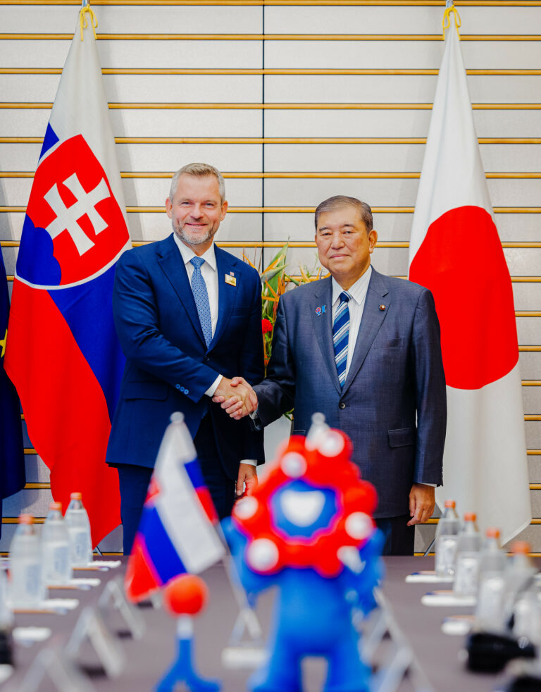 Japonský premiér Shigeru Ishiba (vpravo) počas rokovania s prezidentom SR pri príležitosti jeho návštevy Japonska v rámci osláv Národného dňa Slovenskej republiky na Svetovej výstave EXPO 2025 v Osake. Japonsko, 9. september 2025. Foto: SITA/Kancelária prezidenta SR