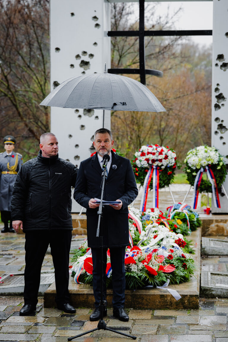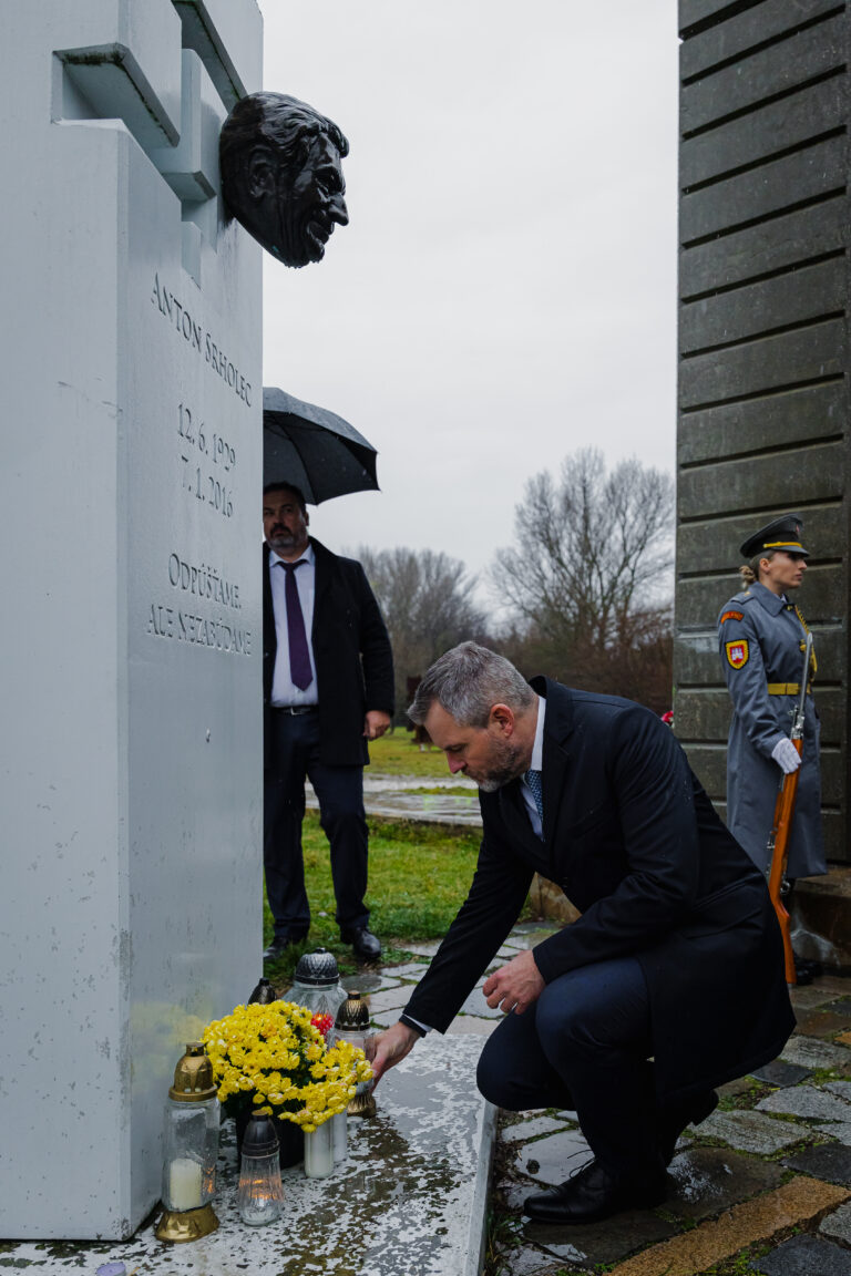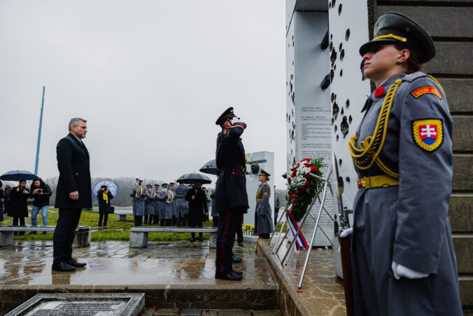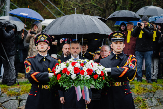 Prezident SR Peter Pellegrini počas pietnej spomienky na obete komunistického režimu pri príležitosti Dňa boja za slobodu a demokraciu na Devíne pri Bráne Slobody. Foto: SITA/Kancelária prezidenta SR