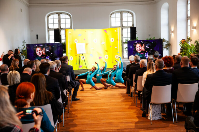 Predstavenie detí počas podujatia Oslava 100. výročia práv detí organizovaného Úradom komisára pre deti pri príležitosti Svetového dňa detí - UNICEF v priestoroch záhradného pavilónu Bratislavského hradu. Bratislava, 20. november 2024. Foto: SITA/Bokor Tomáš
