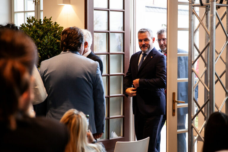 Prezident SR Peter Pellegrini (druhý sprava) počas príchodu na podujatie Oslava 100. výročia práv detí organizované Úradom komisára pre deti v priestoroch záhradného pavilónu Bratislavského hradu pri príležitosti Svetového dňa detí - UNICEF. Bratislava, 20. november 2024. Foto: SITA/Bokor Tomáš