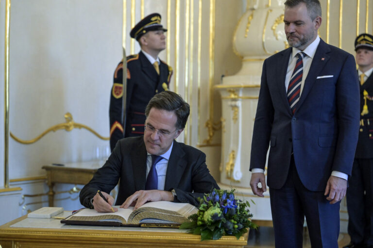 Generálny tajomník NATO Mark Rutte počas zápisu do pamätnej knihy v rámci prijatia generálneho tajomníka NATO prezidentom SR v Prezidentskom paláci. Bratislava, 20. Januar 2025. Foto: archívne, SITA/Milan Illík