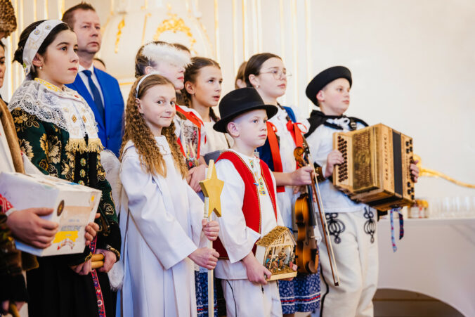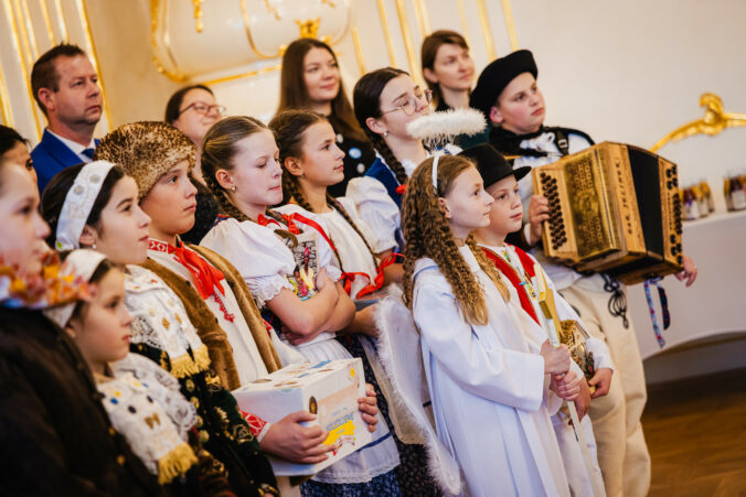 Koledníci Dobrej noviny počas prijatia prezidentom SR v Prezidentskom paláci. Bratislava, 7. január 2025. Foto: SITA/Kancelária prezidenta SR
