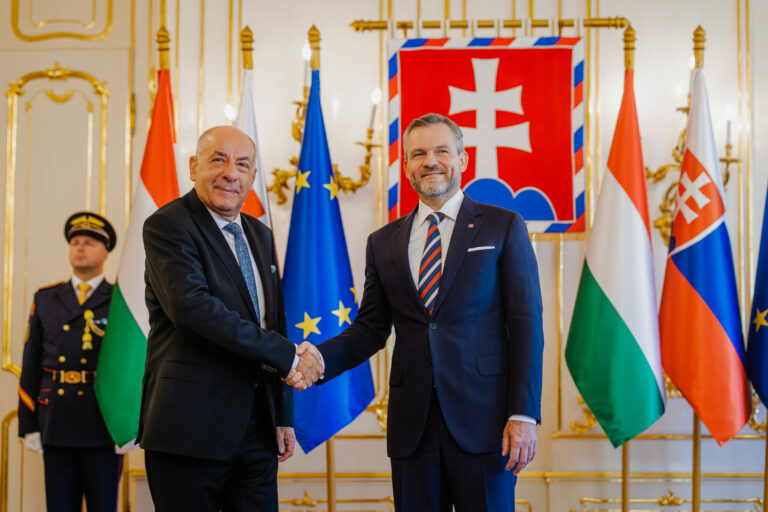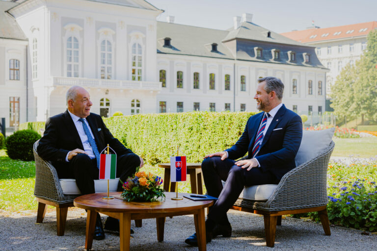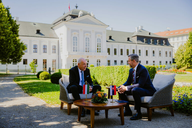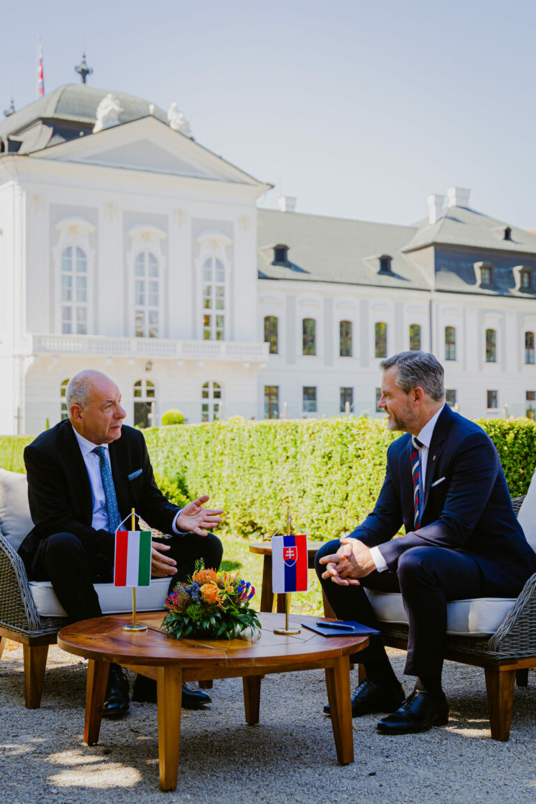 Prezident SR Peter Pellegrini prijal v Prezidentskom paláci maďarského prezidenta Tamása Sulyoka, vo štvrtok 3. júla 2025 v Bratislave. Foto: SITA/Kancelária prezidenta SR