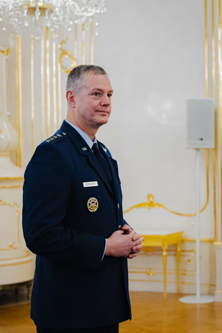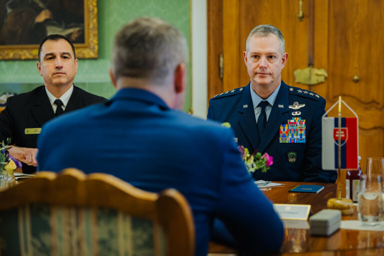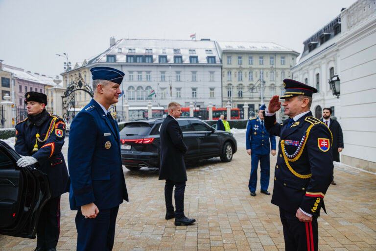 Vrchný veliteľ spojeneckých síl v Európe (SACEUR) Alexus G. Grynkewich (druhý zľava) počas prijatia prezidentom SR v Prezidentskom paláci v rámci nástupnej návštevy najvyššieho veliteľa spojeneckých síl v Európe (SACEUR), na ktorej sa oboznamuje so špecifikami obrany SR a aktuálnym stavom plnenia spojeneckých záväzkov. Bratislava, 14. január 2026. Foto: SITA/Kancelária prezidenta SR