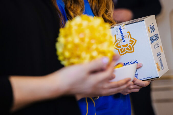 Atmosféra počas prijatia zástupcov Ligy proti rakovine (LPR) pri príležitosti Dňa narcisov v Prezidentskom paláci. Pripnutím žltého narcisu v rámci verejno-prospešnej zbierky Ligy proti rakovine vyjadrujeme podporu a spolupatričnosť s onkologickými pacientmi. Bratislava, 10. apríl 2025. Foto: SITA/Kancelária prezidenta