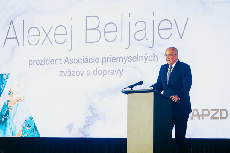 Prezident Asociácie priemyselných zväzov a dopravy (APZD) Alexej Beljajev počas slávnostného večera slovenského priemyslu a dopravy za účasti prezidenta SR v DoubleTree by Hilton v Bratislave. Bratislava, 10. november 2025. Foto: SITA/Kancelária prezidenta SR