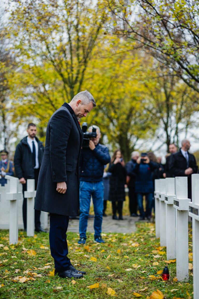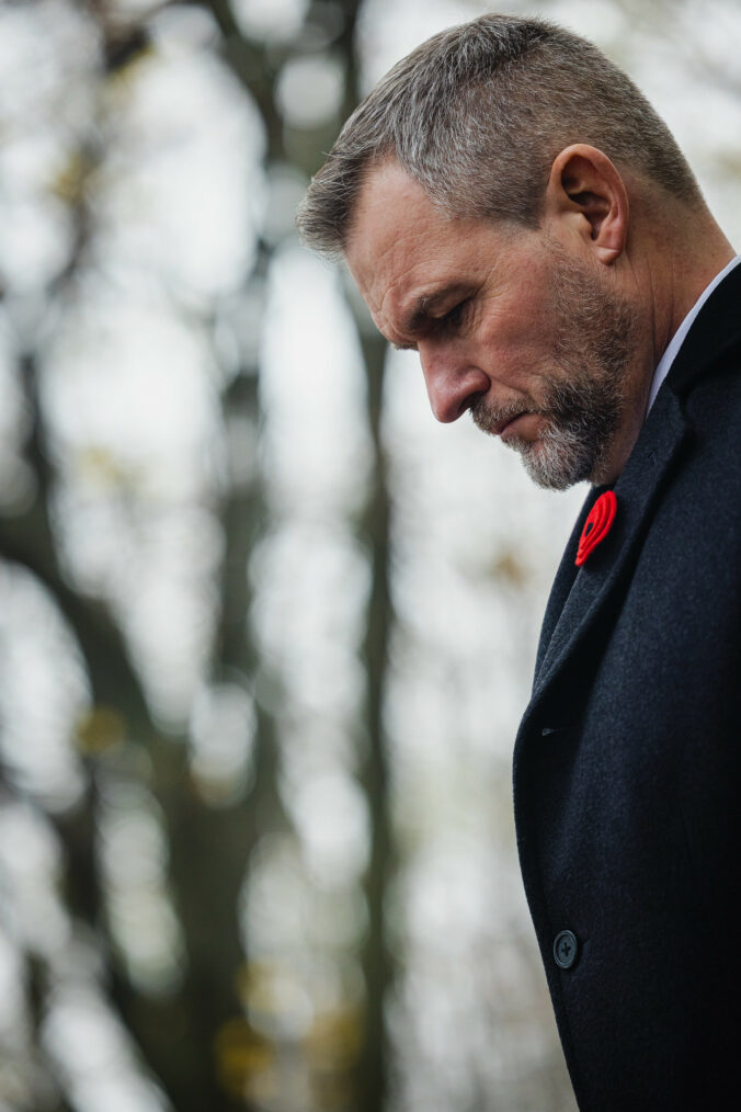 Prezident SR Peter Pellegrini počas uctenia si pamiatky pri príležitosti Medzinárodného dňa vojnových veteránov na Cintoríne prvej svetovej vojny Kopčany v Petržalke. Bratislava, 11. november 2025. Foto: SITA/Kancelária prezidenta SR