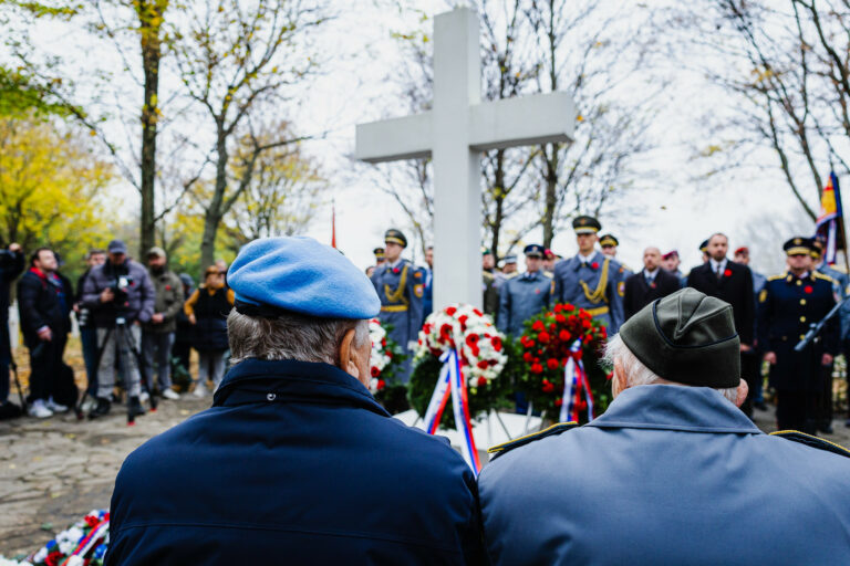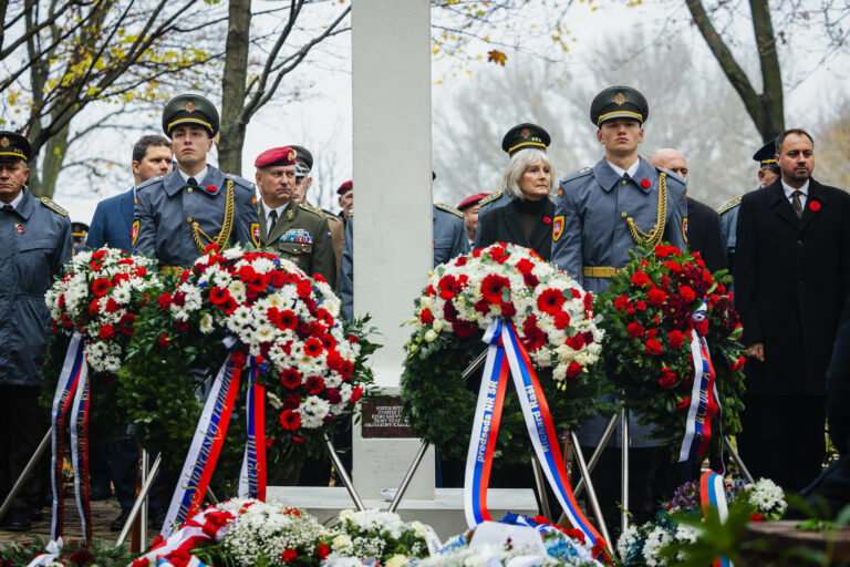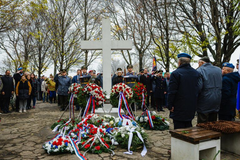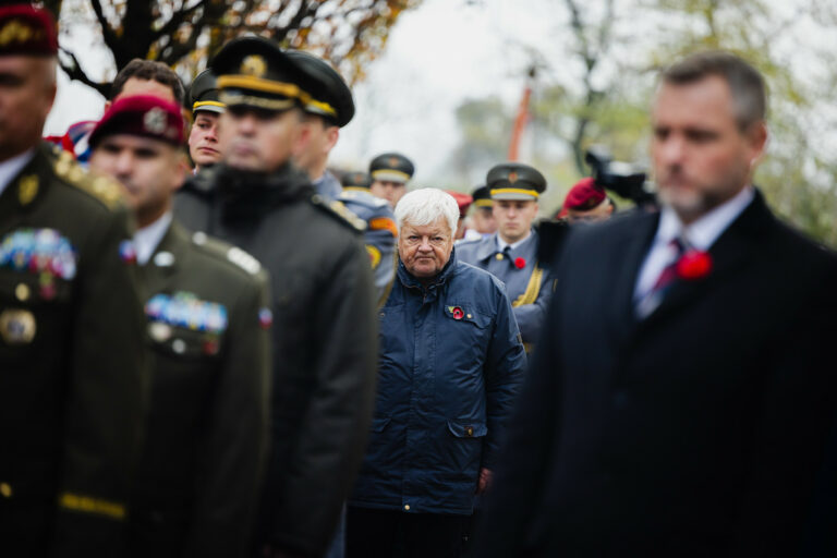 Atmosféra počas pietneho aktu kladenia vencov za účasti prezidenta SR pri príležitosti Medzinárodného dňa vojnových veteránov na Cintoríne prvej svetovej vojny Kopčany v Petržalke. Bratislava, 11. november 2025. Foto: SITA/Kancelária prezidenta SR