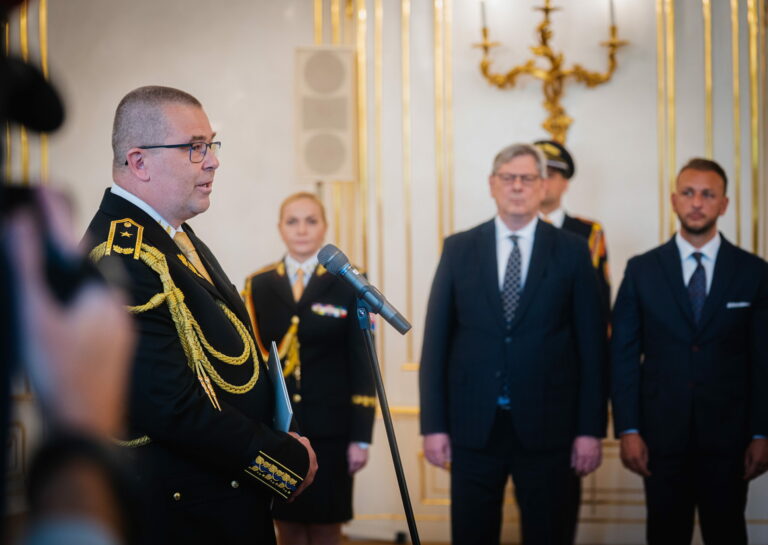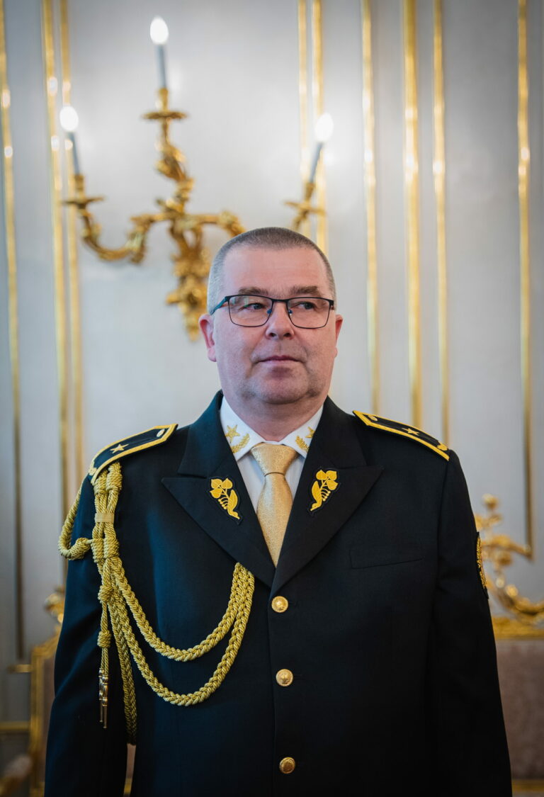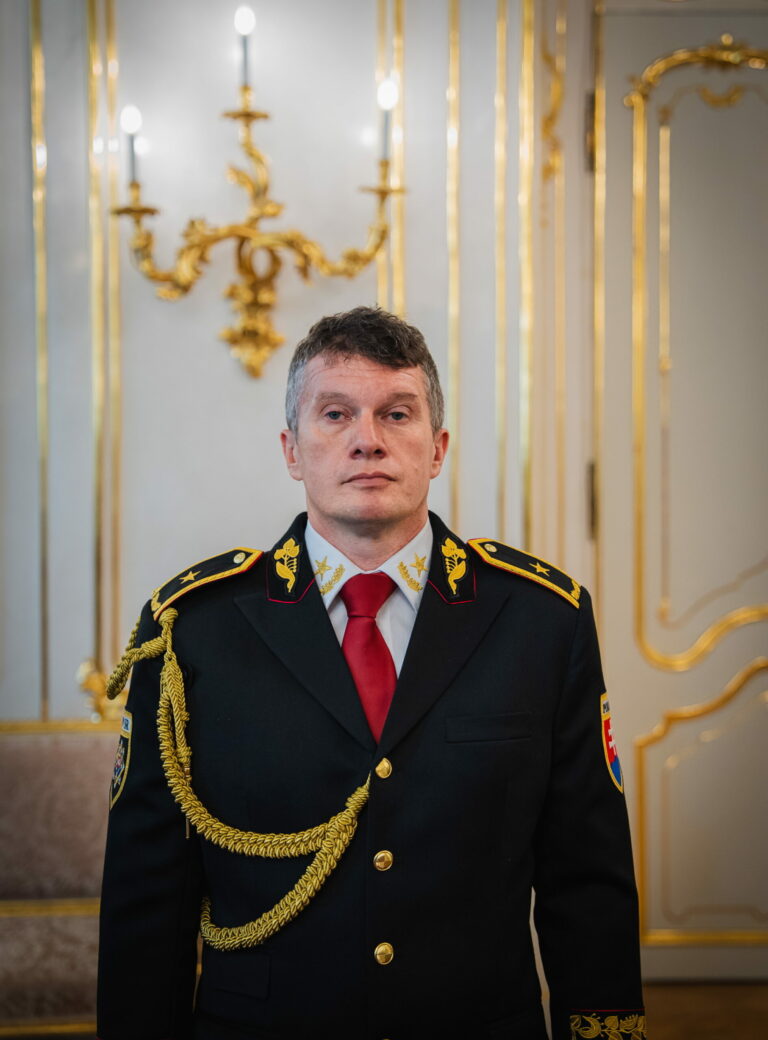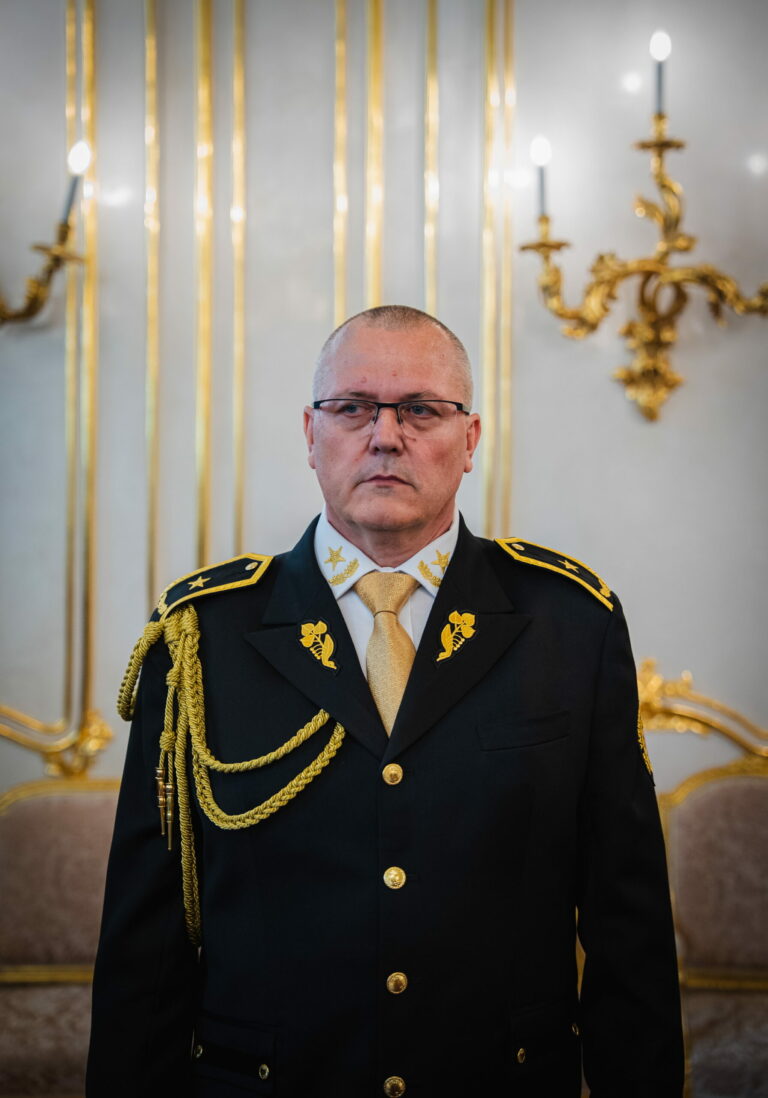 Riaditeľ Zboru väzenskej a justičnej stráže (ZVJS) Ľubomír Klištinec vymenovaný do hodnosti generála počas vymenovania generálov prezidentom SR v Prezidentskom paláci. Bratislava, 25. apríl 2025. Foto: SITA/Kancelária prezidenta
