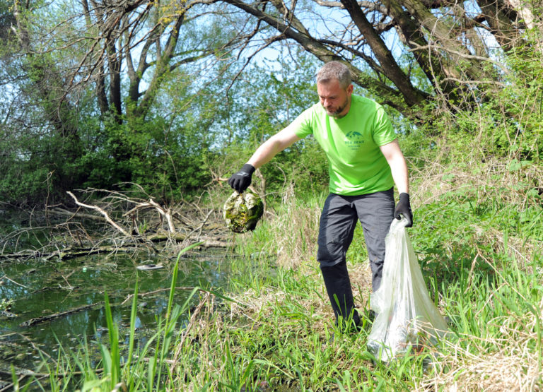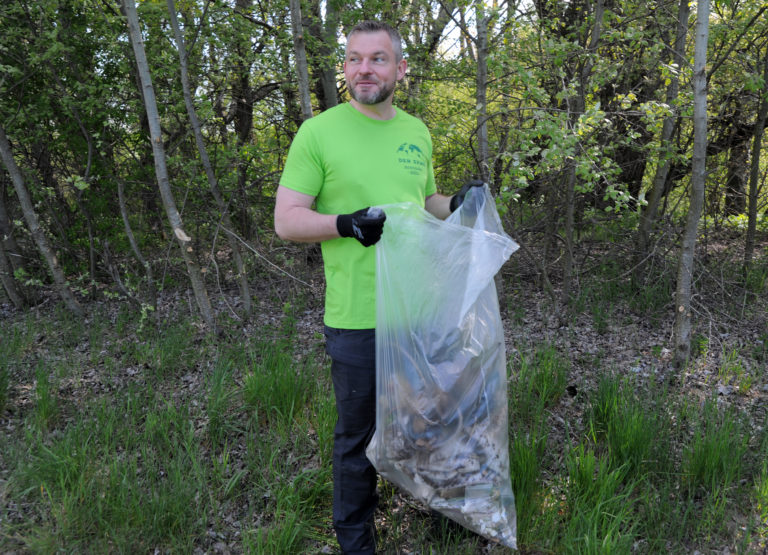 Predseda strany HLAS - sociálna demokracia Peter Pellegrini zbiera odpadky v prírode v obci Šoporňa v rámci aktivít strany HLAS-SD, zameraných na ochranu životného prostredia pri príležitosti osláv Sviatku práce. Šoporňa, 1. máj 2021. Foto: SITA/Martin Havran