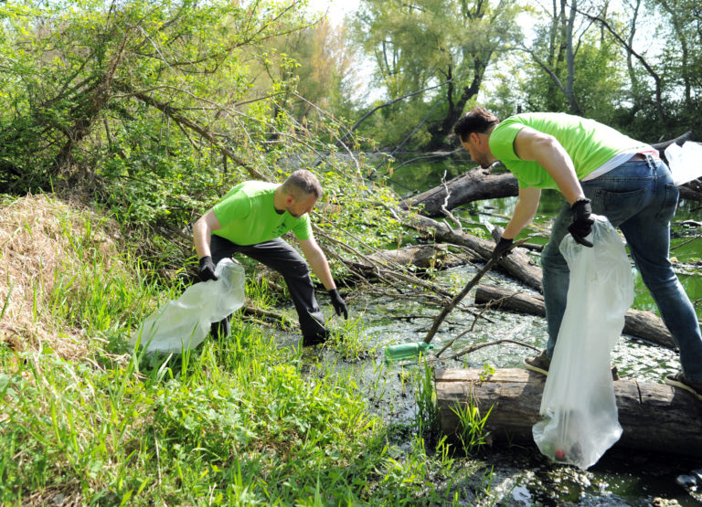 Predseda strany HLAS - sociálna demokracia Peter Pellegrini (vľavo) zbiera odpadky v prírode v obci Šoporňa v rámci aktivít strany HLAS-SD, zameraných na ochranu životného prostredia pri príležitosti osláv Sviatku práce. Šoporňa, 1. máj 2021. Foto: SITA/Martin Havran