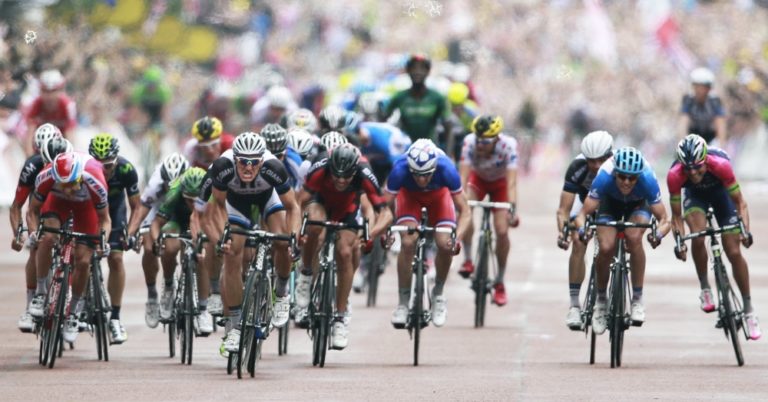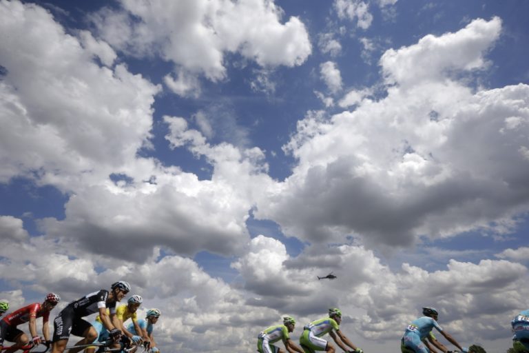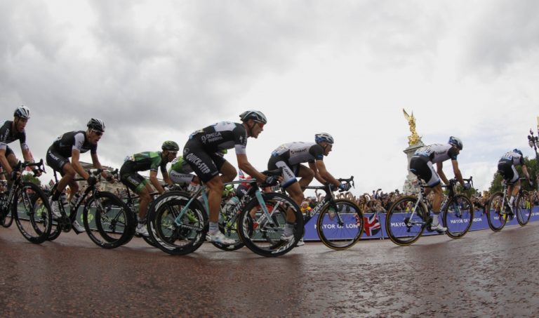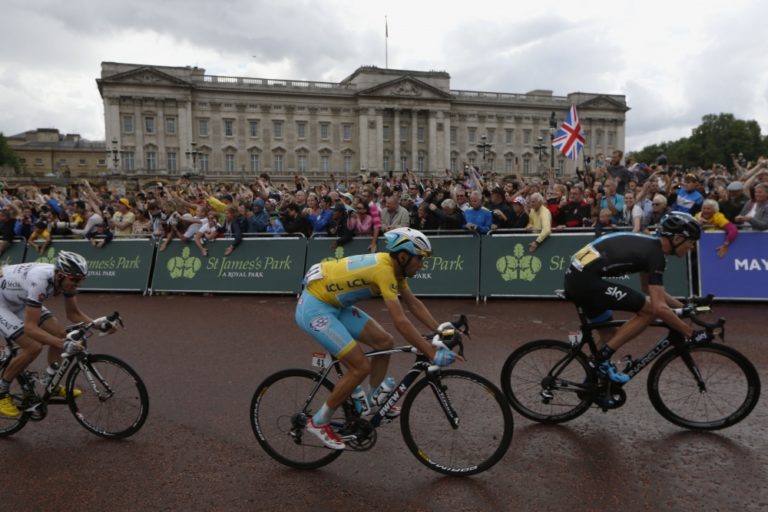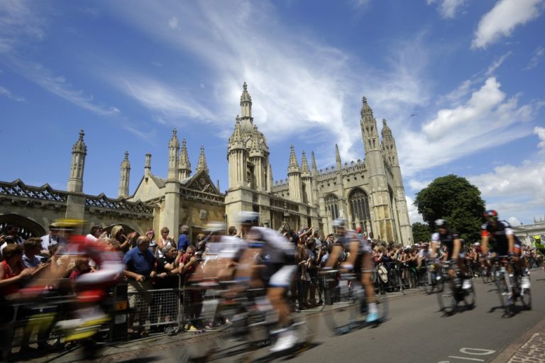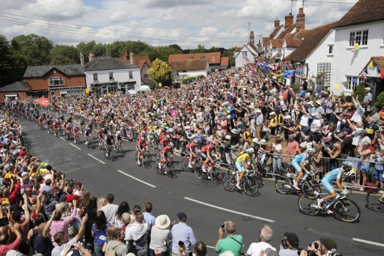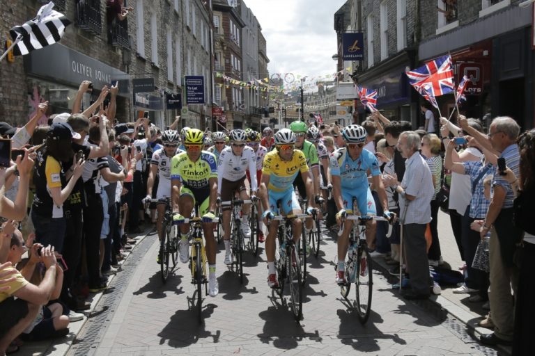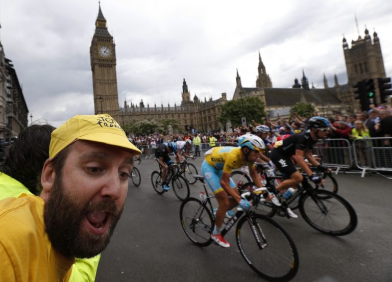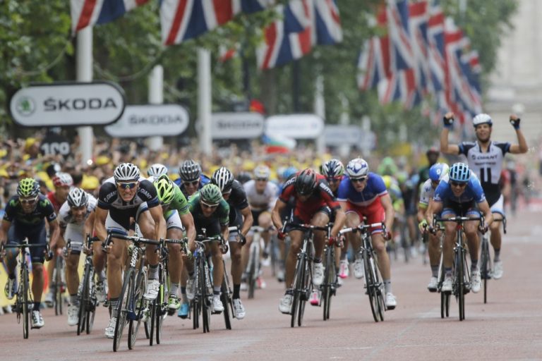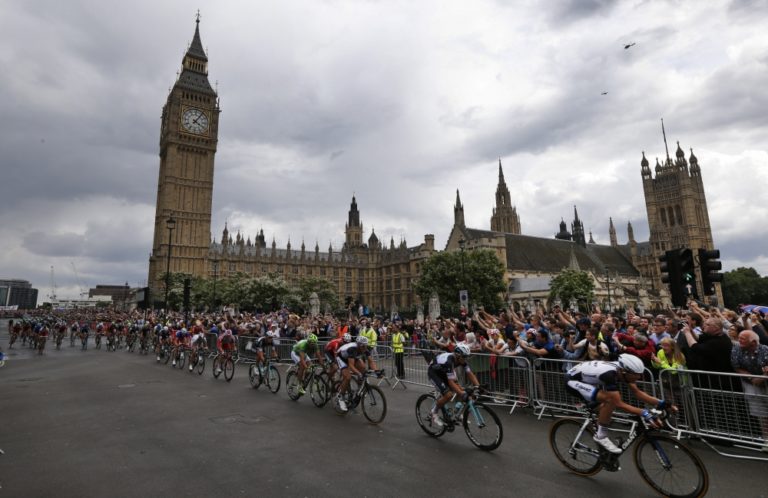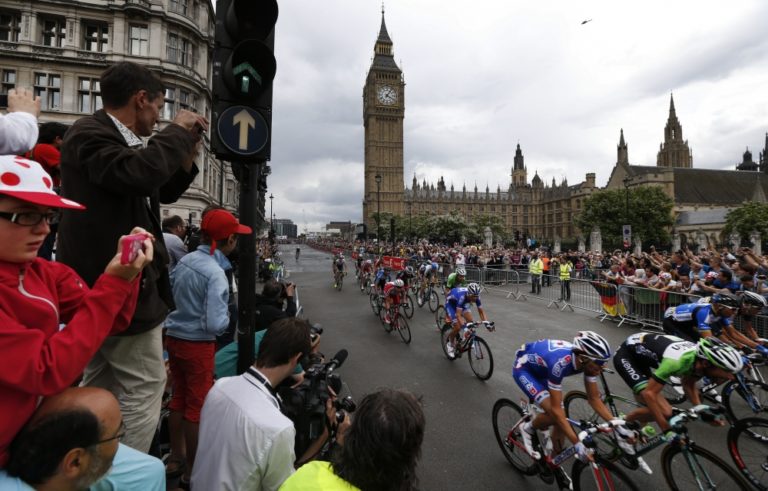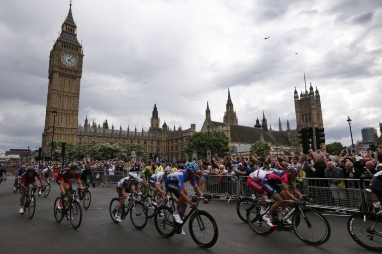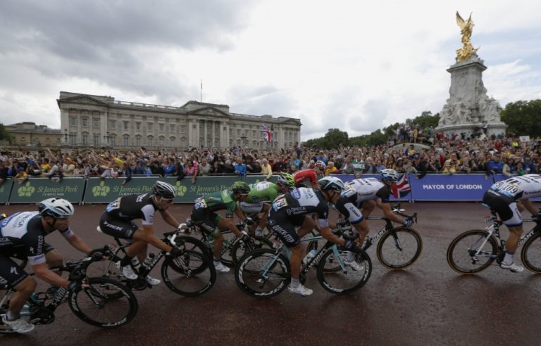 Cyklisti počas tretej etapy 101. ročníka Tour de France, ktorá merala 155 kilometrov a viedla z Cambridgeu do Londýna. Foto: SITA/AP
