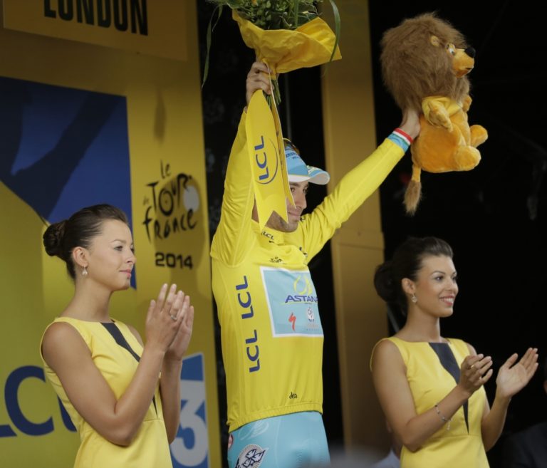 Taliansky cyklista Vincenzo Nibali si v tretej etape 101. ročníka Tour de France udržal žltý dres pre lídra pretekov. Foto: SITA/AP