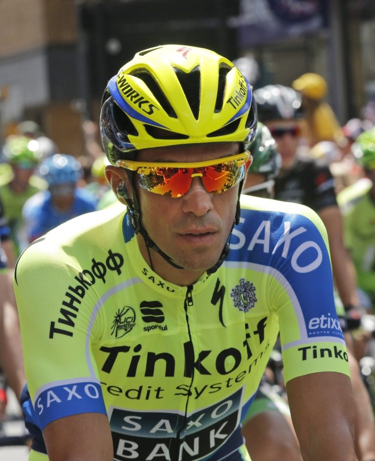 Španielsky cyklista Alberto Contador počas tretej etapy 101. ročníka Tour de France, ktorá merala 155 kilometrov a viedla z Cambridgeu do Londýna. Foto: SITA/AP