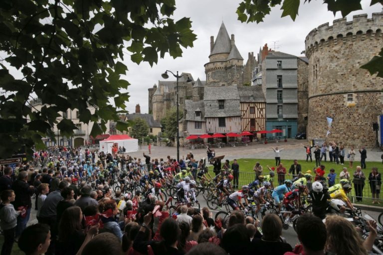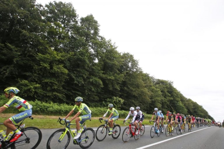 Cyklisti počas tretej etapy 103. ročníka Tour de France, ktorá merala 223,5 kilometra a viedla z Granville do Angers. (4. júl 2016) Foto: SITA/AP