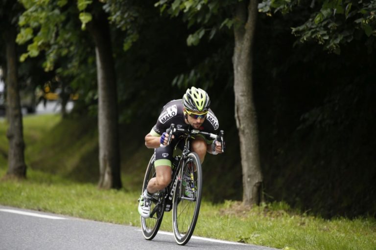 Francúzsky cyklista Armindo Fonseca počas tretej etapy 103. ročníka Tour de France, ktorá merala 223,5 kilometra a viedla z Granville do Angers. (4. júl 2016) Foto: SITA/AP