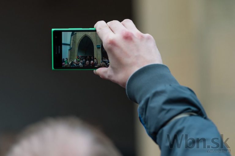 Fanúšik Petra Sagana si zhotovuje záznam po obrade manželov Saganovcov v rímsko-katolíckym kostolom v Dolnom Kubíne. Dolný Kubín, 11. november 2015. Foto: SITA/Milo Fabian