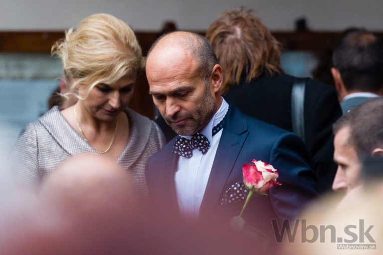Otec Kataríny Smolkovej (Saganovej) po obrade manželov Saganovcov v rímsko-katolíckom kostole v Dolnom Kubíne. Dolný Kubín, 11. november 2015. Foto: SITA/Milo Fabian