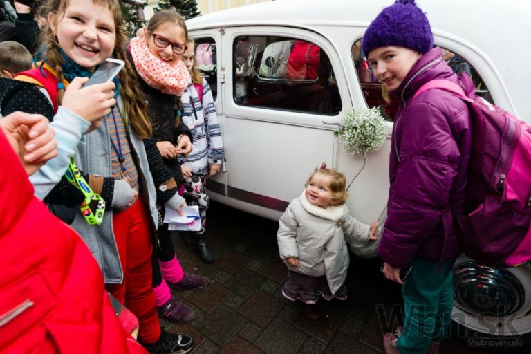 Malí fanúšikovia pri svadobnom vozidle Citroën čakajú na príchod manželov Saganovcov. Dolný Kubín, 11. november 2015. Foto: SITA/Milo Fabian
