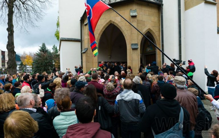 Atmosféra pred rímsko-katolíckym kostolom v Dolnom Kubíne počas obradu Petra Sagana a Katartíny Smolkovej. Dolný Kubín, 11. november 2015. Foto: SITA/Milo Fabian
