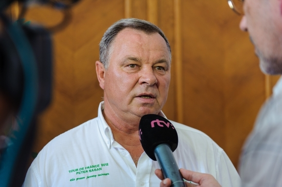 Otec slovenského cyklistu Petra Sagana odpovedá na otázky novinárov pri príležitosti stretnutia Petra Sagana s obyvateľmi mesta Žilina. Žilina, 23. júl 2013. Foto: SITA/Milo Fabian