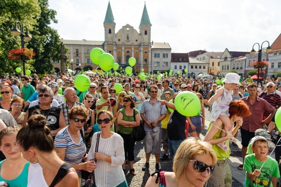 Priaznivci slovenského cyklistu Petra Sagana na Mariánskom námestí pri príležitosti stretnutia Sagana s obyvateľmi mesta Žilina. Žilina, 23. júl 2013. Foto: SITA/Milo Fabian