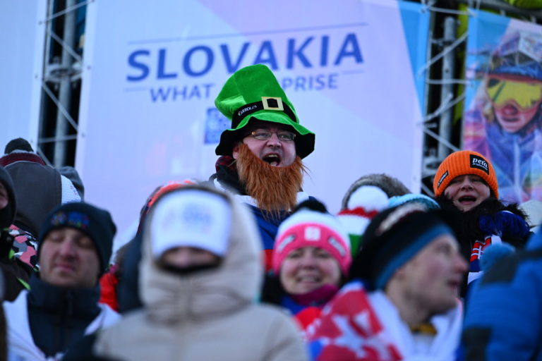 Atmosféra pred začatím 1. kola obrovského slalomu žien v rámci pretekov Svetového pohára v alpskom lyžovaní v lyžiarskom stredisku Jasná (20. január 2024). Foto: SITA/Martin Medňanský.