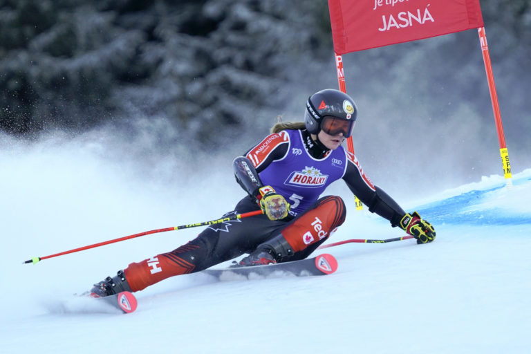 Kanďanka Valerie Grenierová počas prvého kola obrovského slalomu Svetového pohára 2023/2024 v Jasnej (20. január 2024). Foto: SITA/AP.