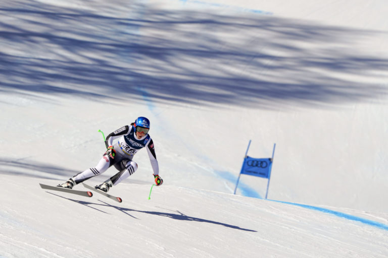 Slovenská reprezentantka Petra Vlhová počas super G v rámci alpskej kombinácie žien na MS v zjazdovom lyžovaní. Cortina d'Ampezzo, 15. február 2021. Foto: SITA/AP.