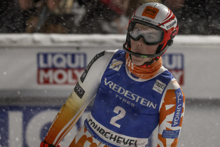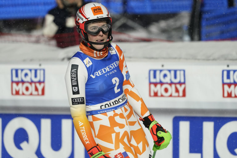 Slovenská lyžiarka Petra Vlhová počas 1. kola nočného slalomu vo francúzskom Courcheveli. Courchevel, 21. december 2023. Foto: SITA/AP.
