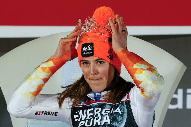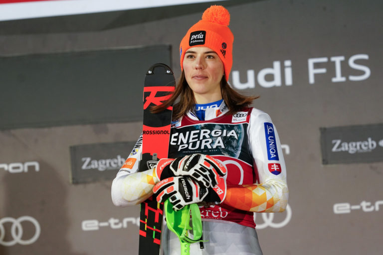 Slovenská lyžiarka Petra Vlhová po slalome Svetového pohára v chorvátskom Záhrebe, v ktorom sa opäť tešila z triumfu. Záhreb, 4. január 2022. Foto: SITA/AP.